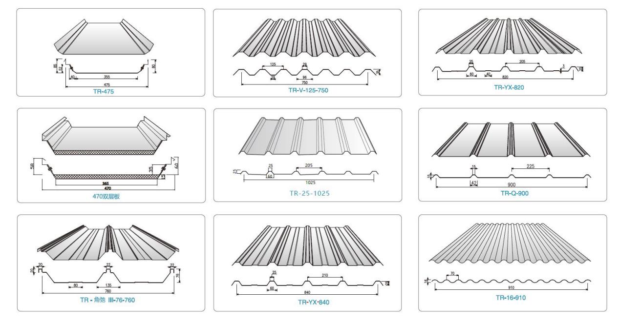 • Tener una combinación de cierre con placa de acero de color. El grosor de la sección transversal es uniforme. La forma de la hoja FRP es consistente con la placa de acero.